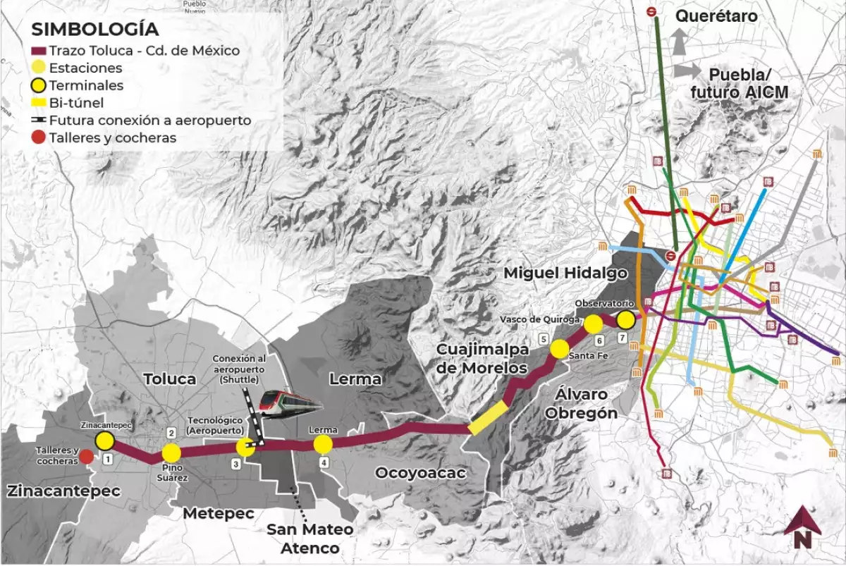 Este sistema ferroviario contará con un total de siete estaciones a lo largo de su ruta, conectando el Estado de México con la Ciudad de México de manera más rápida. Estas estaciones contempla el proyecto: